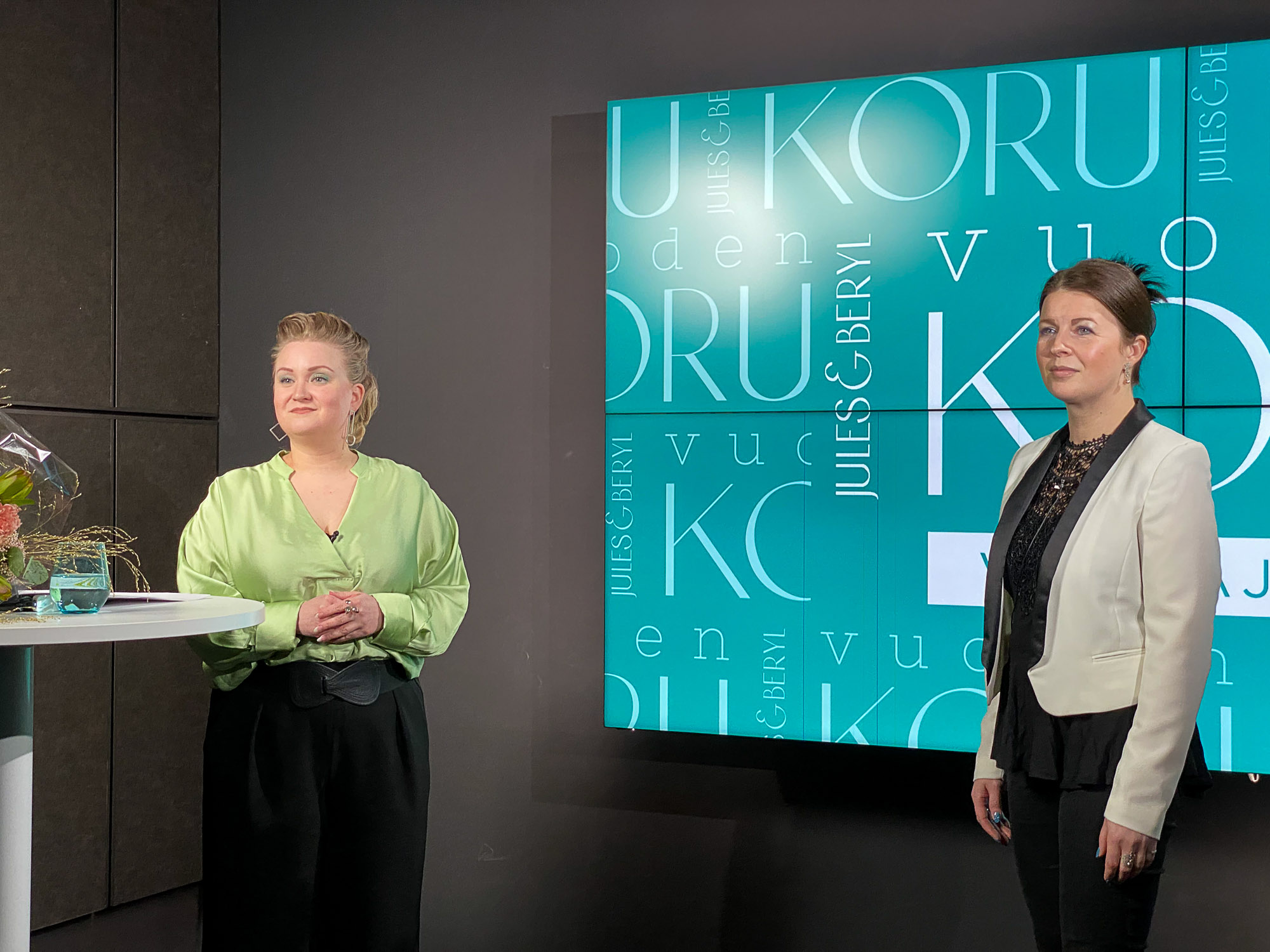 Vuoden koru 2022 palkittiin suorassa studiolähetyksessä 10.2.2022. Kuvassa kilpailun tuottaja Johanna Lundán.